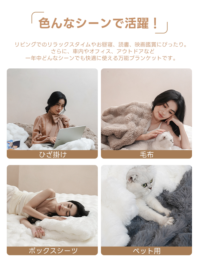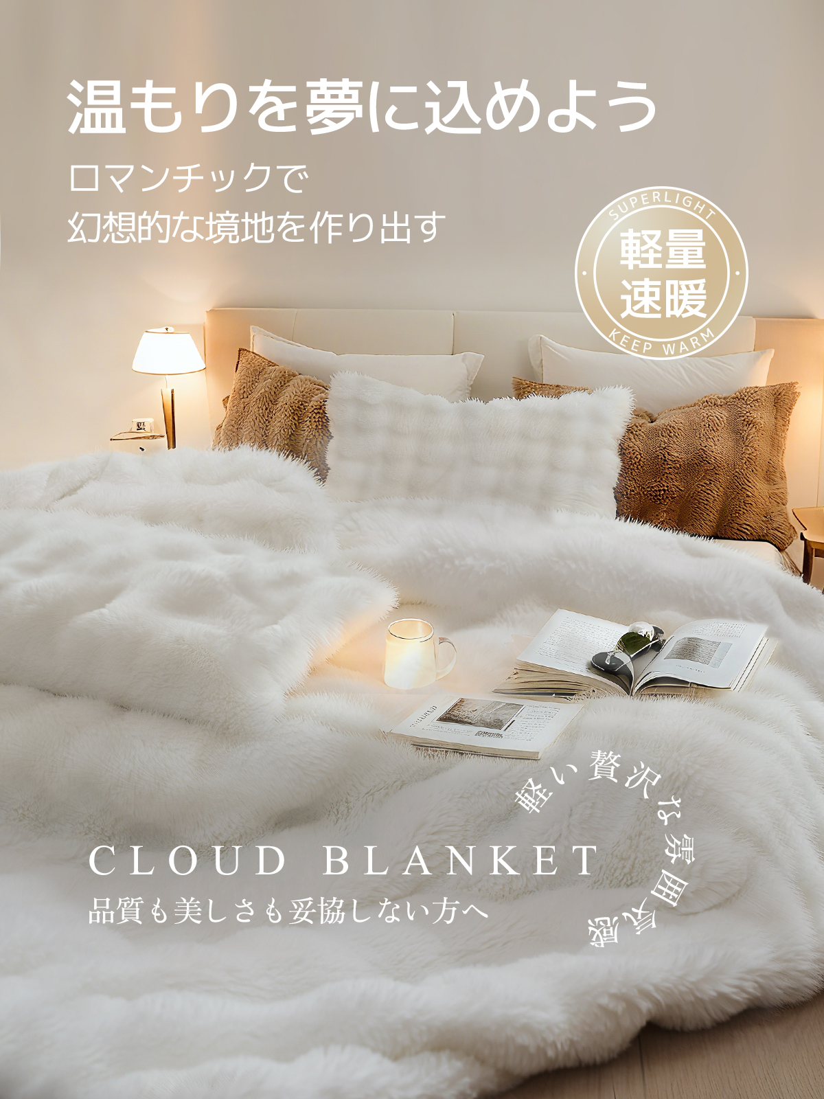 まるで空気をまとうような軽さで、ふんわりと体を包み込むブランケット。